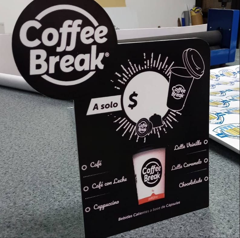 Display Publicitario Personalizado en PVC espumado de 3 mm espesor, impresos en vinilo, con pie desmontable.
